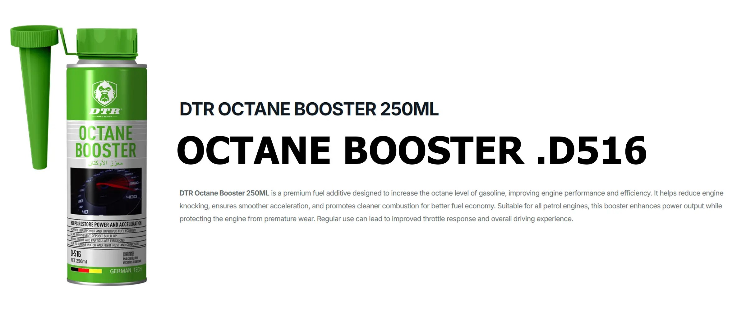 When you fill the fuel tank with gasoline, the octane level may not be enough for the requirements of your car engine, especially high -performance engines. This deficiency can lead to a phenomenon known as “Roads” (Engine Knocking)It is a vibration sound resulting from irregular fuel combustion within the engine cylinders. In the long run, this irregular combustion can cause severe damage to the inner motor parts. Here comes a role DTR Octane Booster D516.